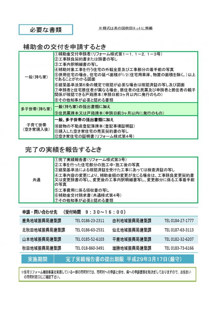 内容は昨年同様で50万円以上のリフォーム工事に対して対象工事金額の10%(上限15万円)を秋田県から補助してもらえるというものです。