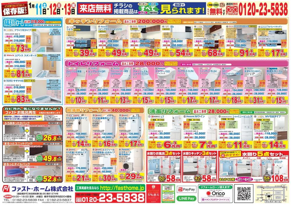 令和2年1月11日から開催の「新春 水廻りリフォーム祭」のお知らせをします。