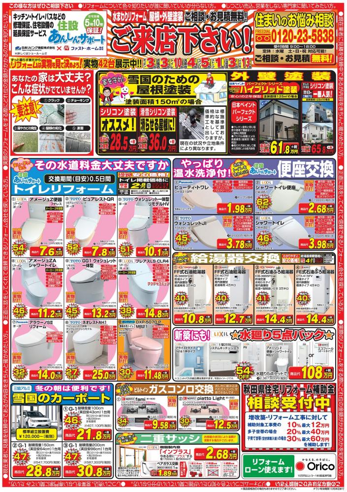 リフォームの季節となりました。皆さんのリフォーム計画を応援するべく保存版チラシ 「水廻りリフォーム&屋根・外壁塗装」を紹介します。