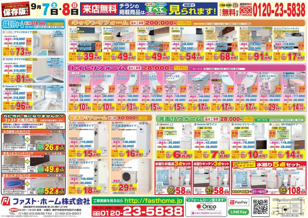 今月7日(土)、8日(日)の二日間、増税前「水廻りリフォーム&屋根・外壁塗り替え」イベントを行います。展示品特価も多数ありますのでリフォームをお考えの方、ご相談をお待ちしております。