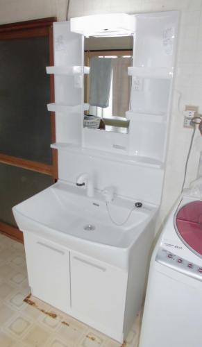 長年使ってきた洗面化粧台だったが水漏れを起こし、使いづらかったこともあり交換することとした。