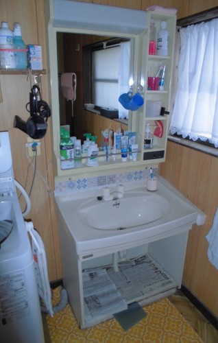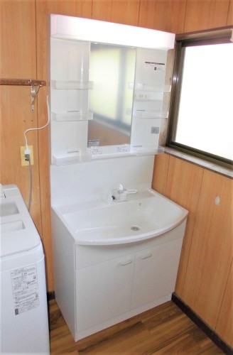 ユニットバス設置に伴い洗面化粧台を交換して使い勝手の悪かった洗面所を改修(配管移設等含む)をすることとした。