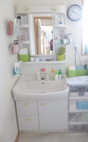 洗面化粧台:タカラ ファミーユ900三面鏡+壁パネル