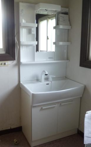 長年使ってきた洗面化粧台だったがシャワー部分や排水部分から水漏れを起こし汚れも取れづらくなってきたことから交換することとした。