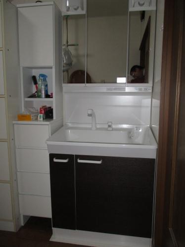 リフォーム箇所洗面化粧台交換+床・壁補修