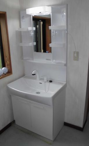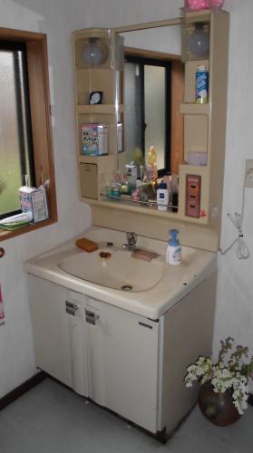 長年使ってきた洗面化粧台だったが、汚れも取れにくくなりシャワー水栓にもしたかったので交換することとした。