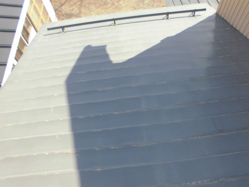しばらく塗装していなかった屋根を見たら白っぽくなっており、また先端部分が雪のせいで塗装が剥がれている状態だったので点検してもらい塗り替えをすることとした。