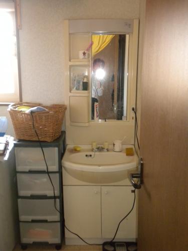 洗面化粧台:TOTO Vシリーズ 天井・壁:ビニールクロス貼り換え 床:クッションフロア貼