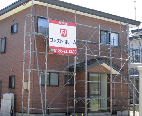 玄関側正面(西側)の外壁が凍害によりボロボロになってしまい相談したところ似た様な金属系サイディングで重ね張りすることとした。
