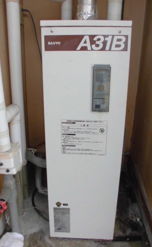 長く使ってきた石油ふろ給湯器から水漏れがあり交換することとした