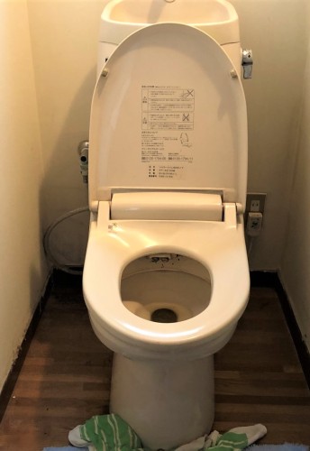 長く使ってきたトイレから水漏れがあり、自動洗浄機能付きの節水型のトイレに交換することとした