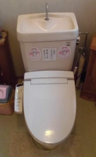 水漏れを起こし、長く使ってきた便器だったのでこれを機会に節水型で自動洗浄機能を持ったものに交換することとした。